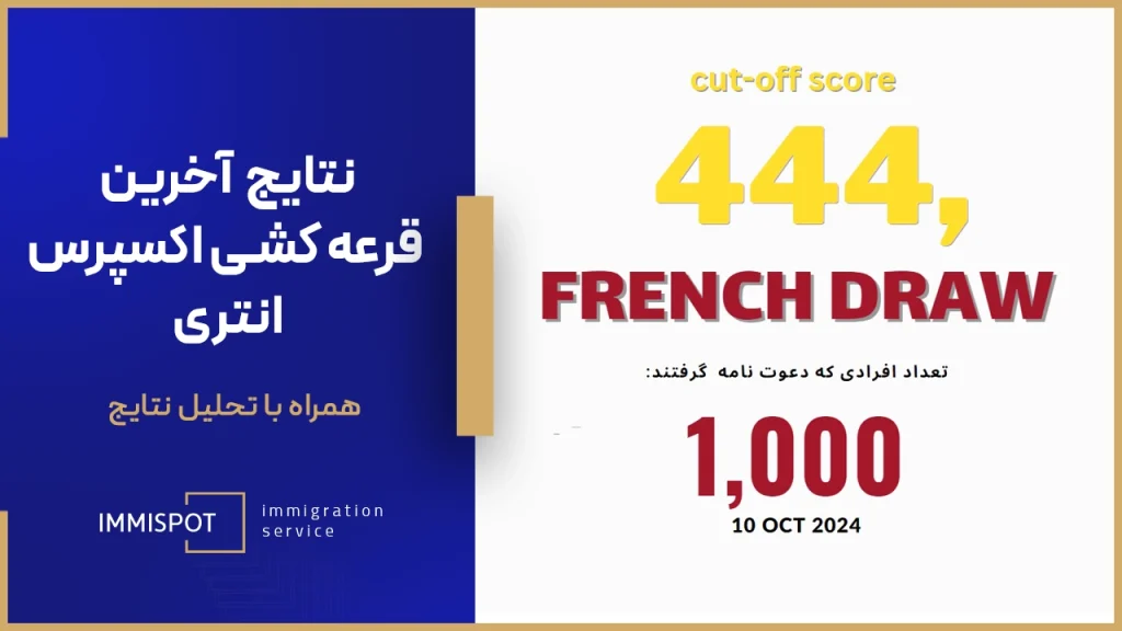 در تاریخ ۱۰ اکتبر ۲۰۲۴، کانادا از ۱,۰۰۰ متقاضی واجد شرایط در دستهبندی زبان فرانسه دعوت کرد تا برای اقامت دائم کانادا درخواست دهند. قرعه کشی اکسپرس انتری 7 اکتبر شماره ۳۱۸ بود. برای تحلیل امتیازهای این قرعه کشی با موسسه مهاجرتی کانادا ایمی اسپات همراه باشید.