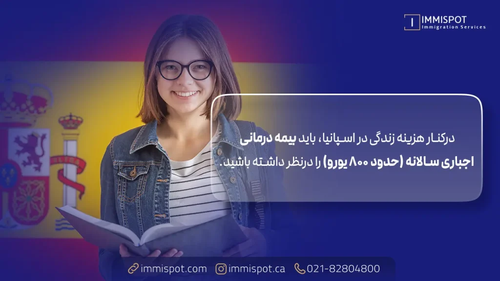 | بیمه درمانی خصوصی | حدود ۸۰۰ در سال | الزامی برای اخذ ویزای تحصیلی اسپانیا |