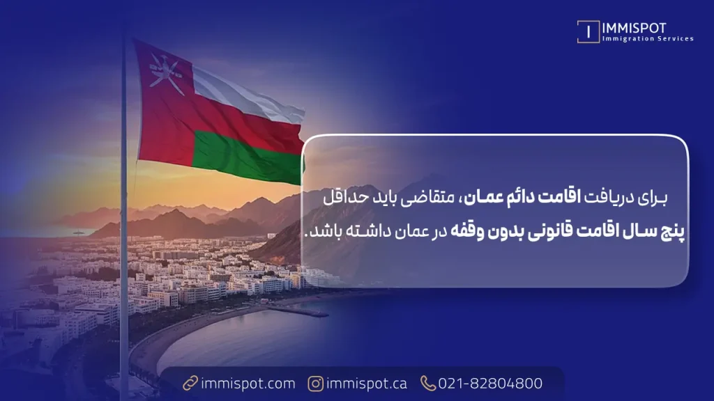 - مدت اقامت مستمر: متقاضی باید حداقل پنج سال اقامت قانونی بدون وقفه در عمان داشته باشد.
